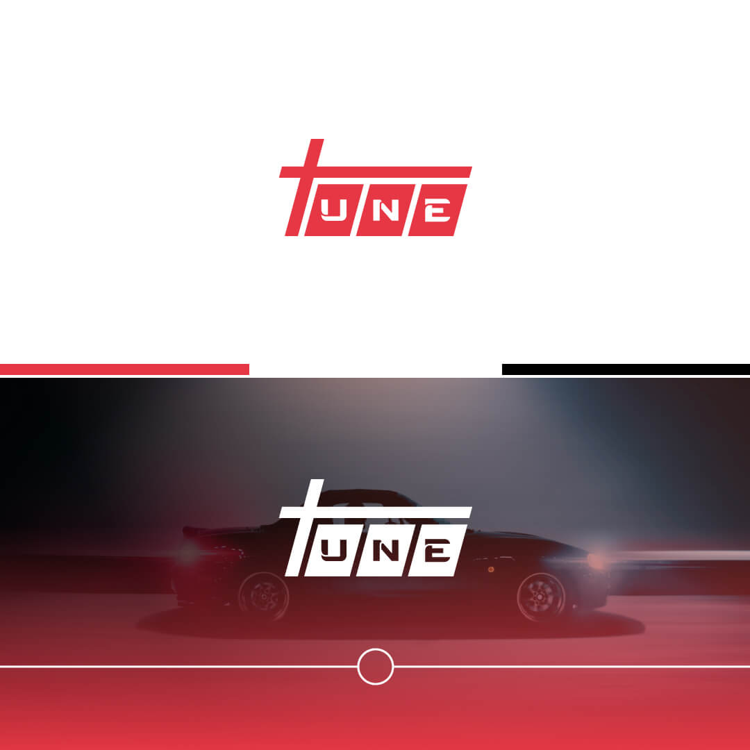 The logo uses rectangles in the “GOL-IT” branding style while creating the word “Tune.” The rectangles are skewed and combined, so they form an angled wave.